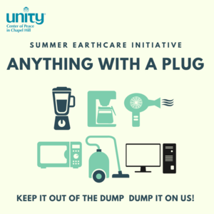 UCP’s Sacred Activism Team is sponsoring an organization called "Antying With A Plug". This organization gives us the opportunity to recycle any small to medium sized electronic device or appliance with a plug. You may also bring any used batteries (except not car batteries).