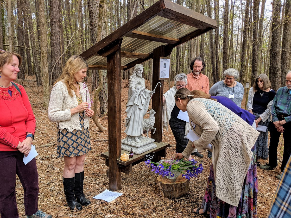 On Sunday April 7 we gathered on the Serenity Trail for a celebration to welcome the statue of Jesus The Good Shepherd to our Sacred Spaces.
