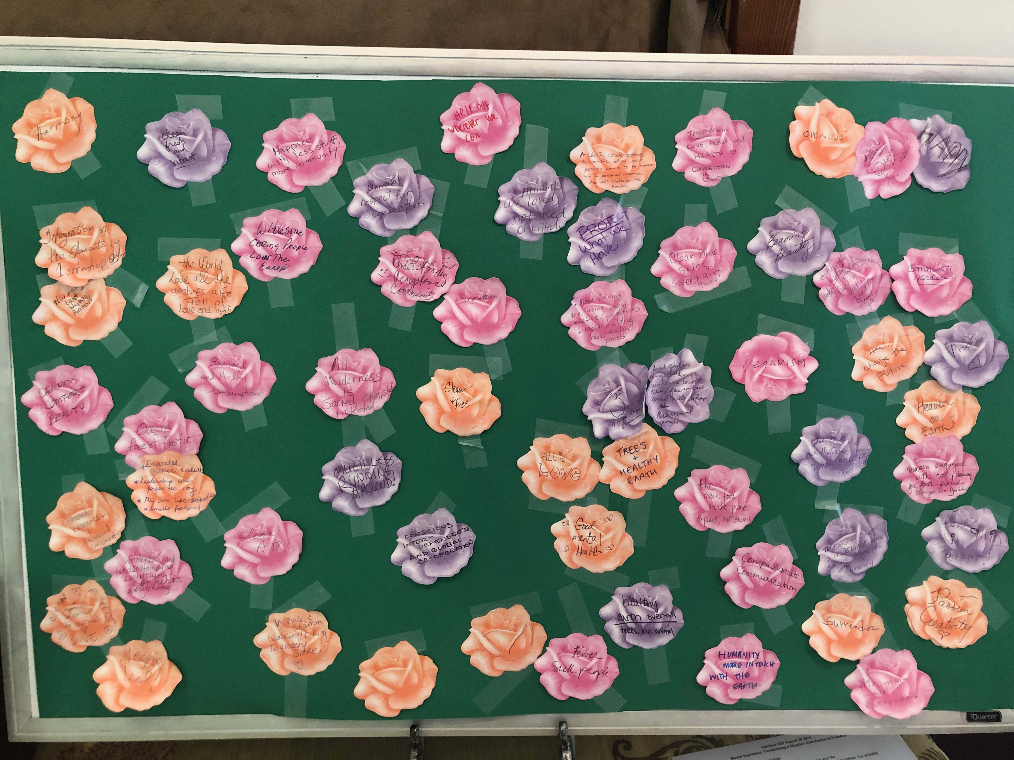 After my talk on A Vision for a Healed Planet, I led a simple visioning process where we all opened to a Divine Vision of what our planet, and all of humanity, would look like in 20 or 30 years... provided we began to implement the solutions that are currently available to us to reverse climate change and create a socially just world. Then everyone wrote a word or short phrase that captured that vision on a "flower stickie", came up to the platform and placed it on our board, created a vibrate and consciousness-expanding Flower Bed of Possibility. Together, we are making a difference!